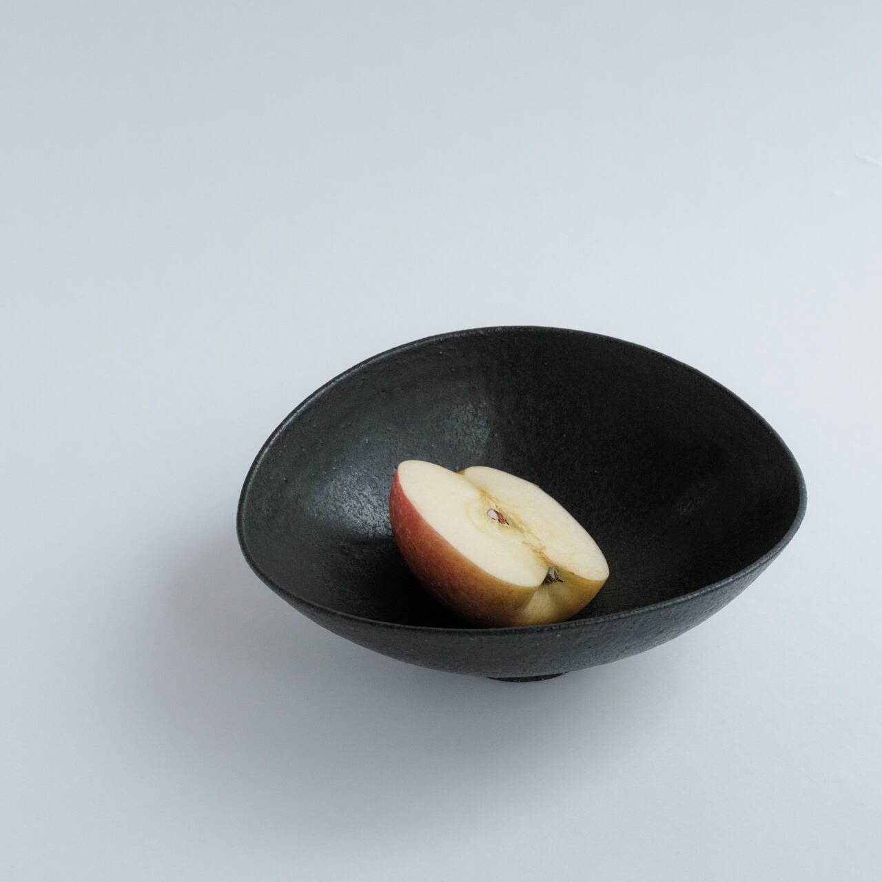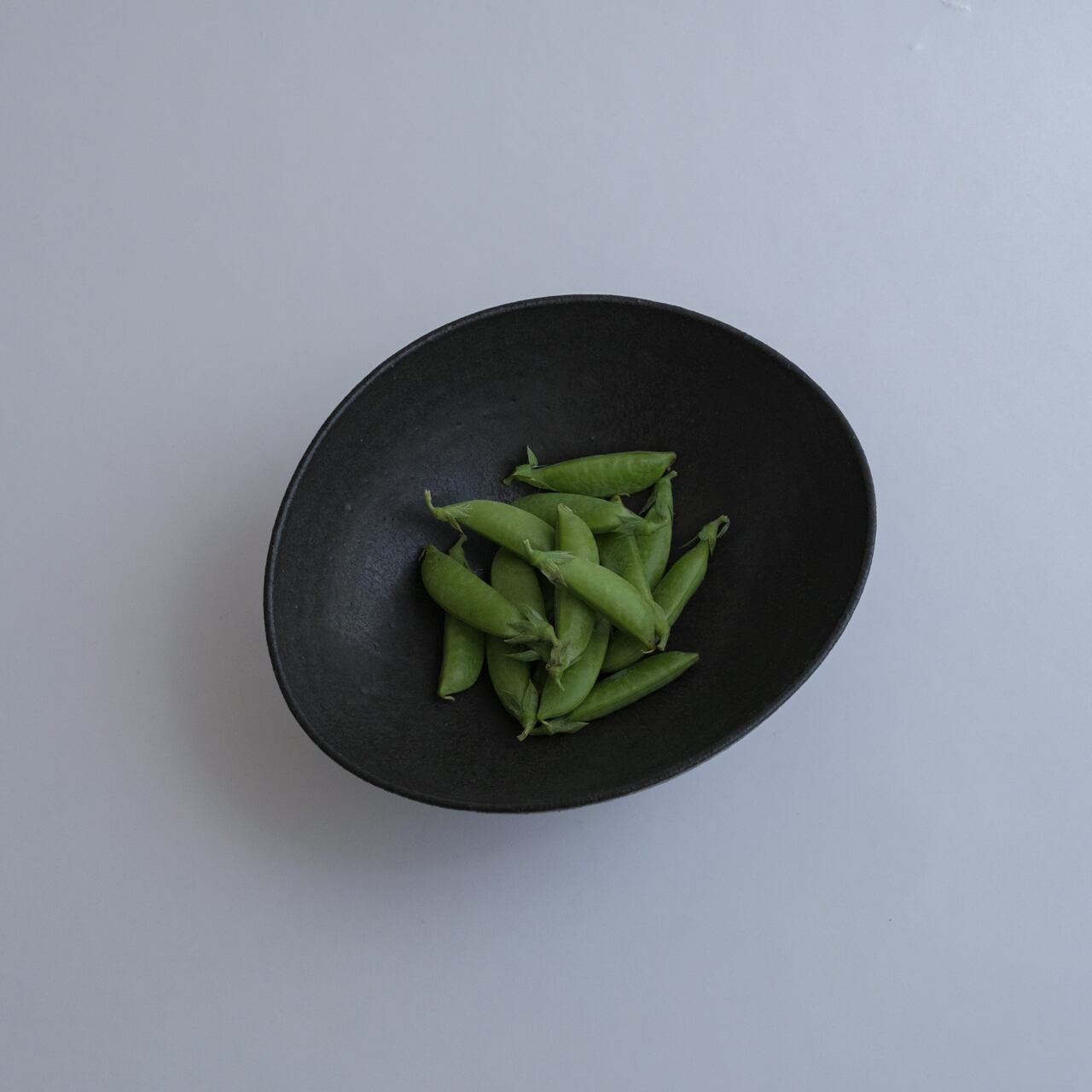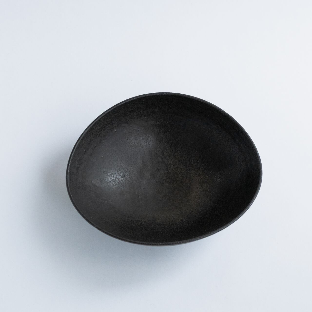 こちらの黒釉の楕円鉢は、ところどころ鉄粉のようにキラキラ光る箇所があったり、まだらになっていたりと美しく、シンプルながら上品でモダンな印象です。