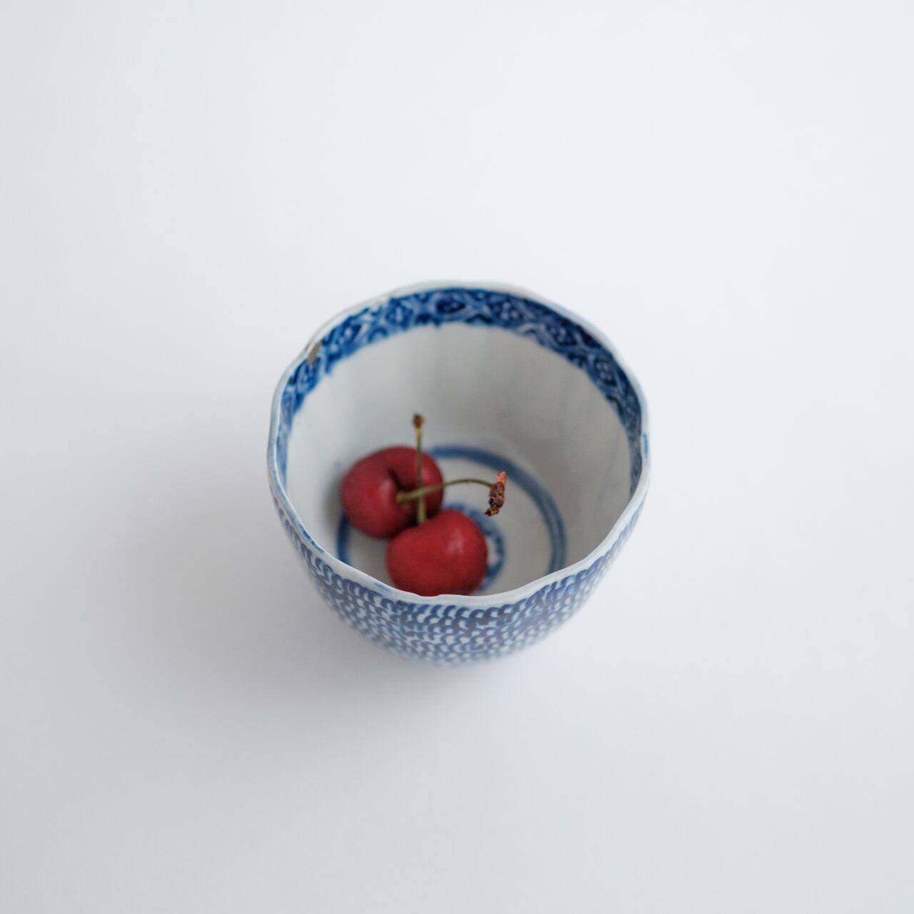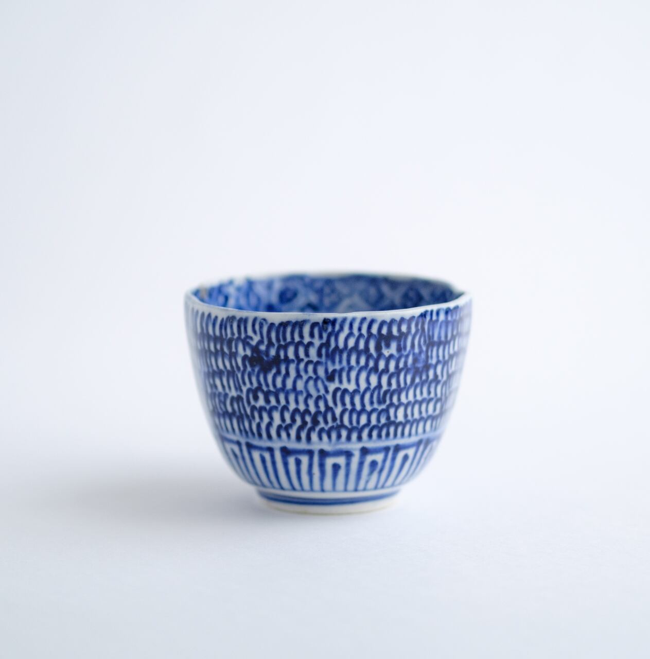染付で手で描かれた微塵唐草は、細やかな中にも強弱があり、遊びを感じます。