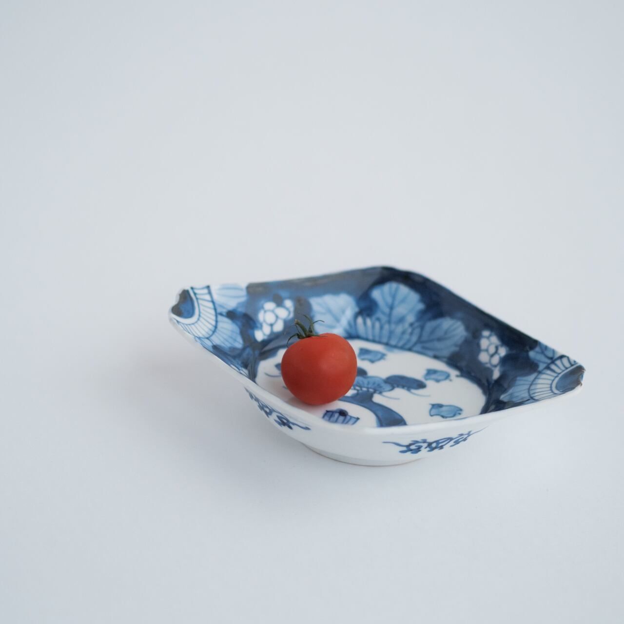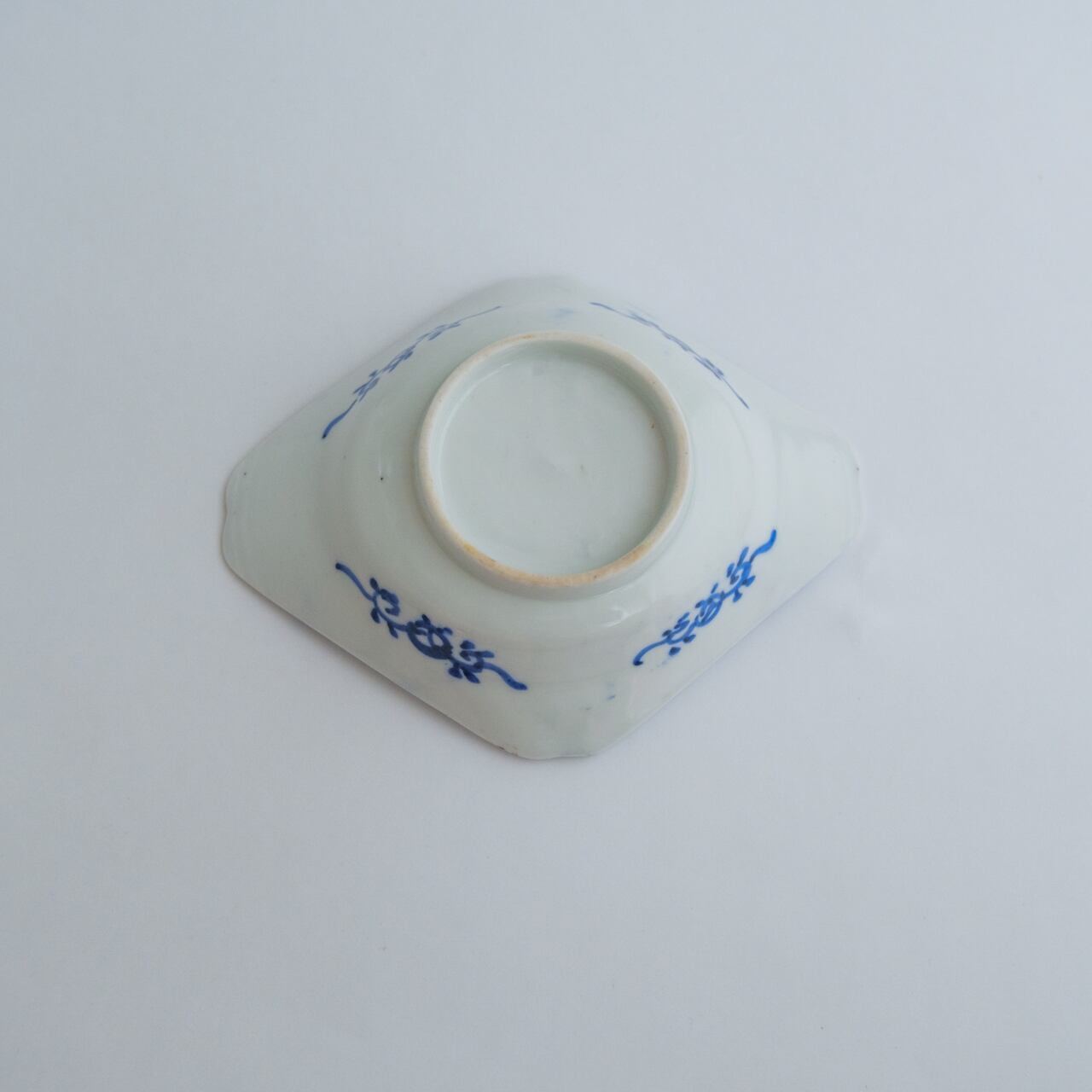 古い染付の菱形皿です。