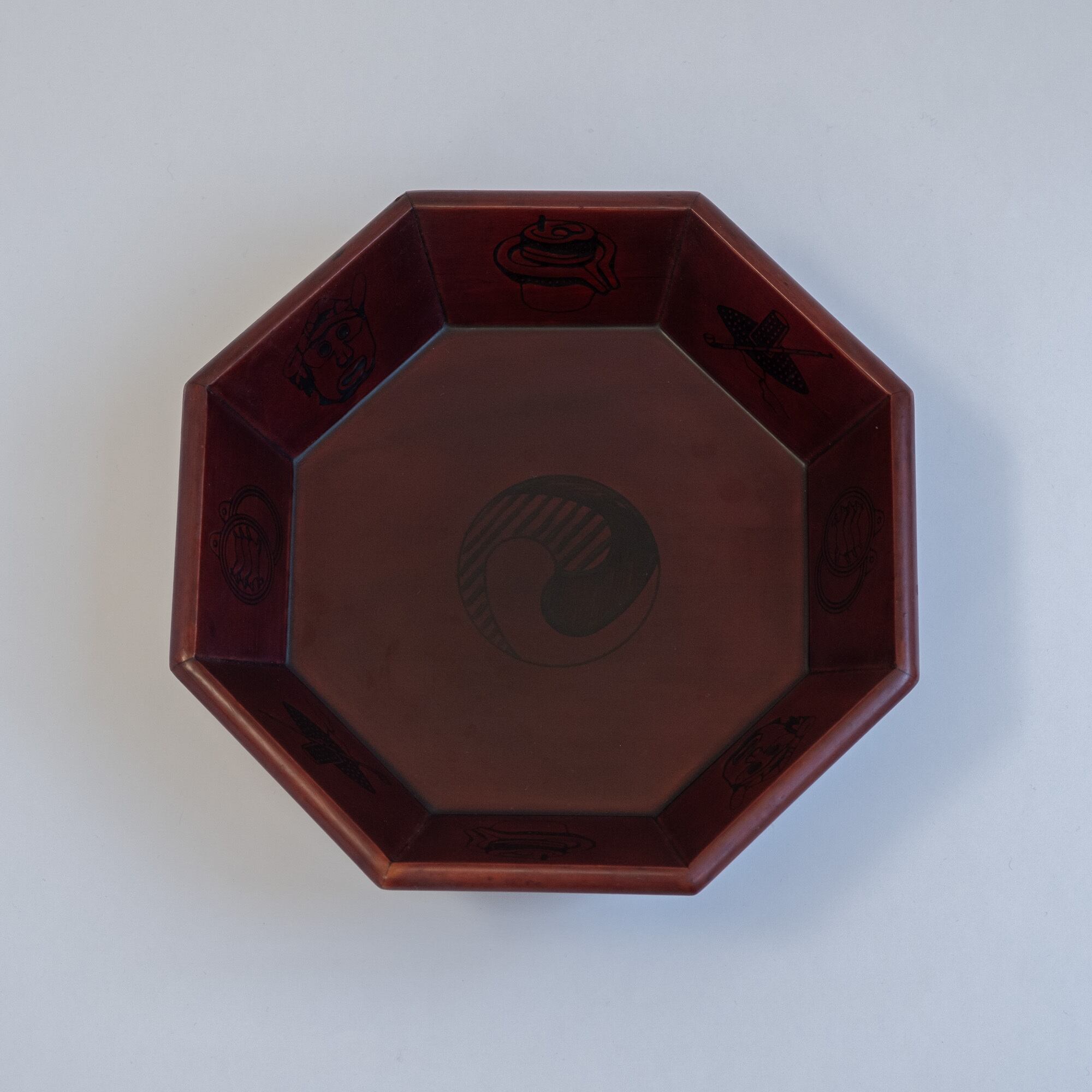 木に漆のような塗料が塗られているので、基本的には乾燥したお菓子や果物をのせるトレイとして使ったり、インテリアとして使っていただくのがいいと思います。