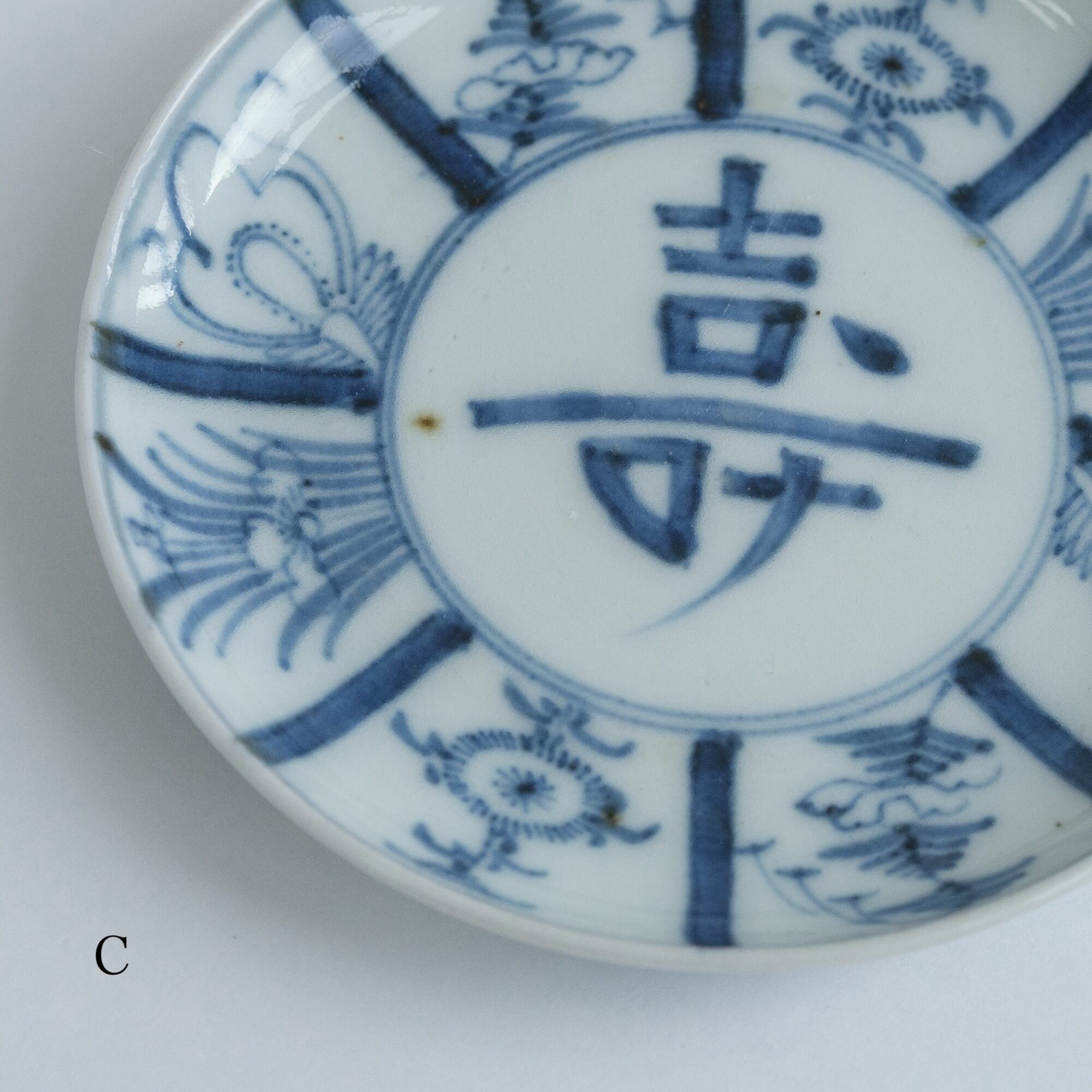 Cは焼成時についたような茶色い点があります。古いものの味わいと捉えてくだされば。画像でご確認ください。