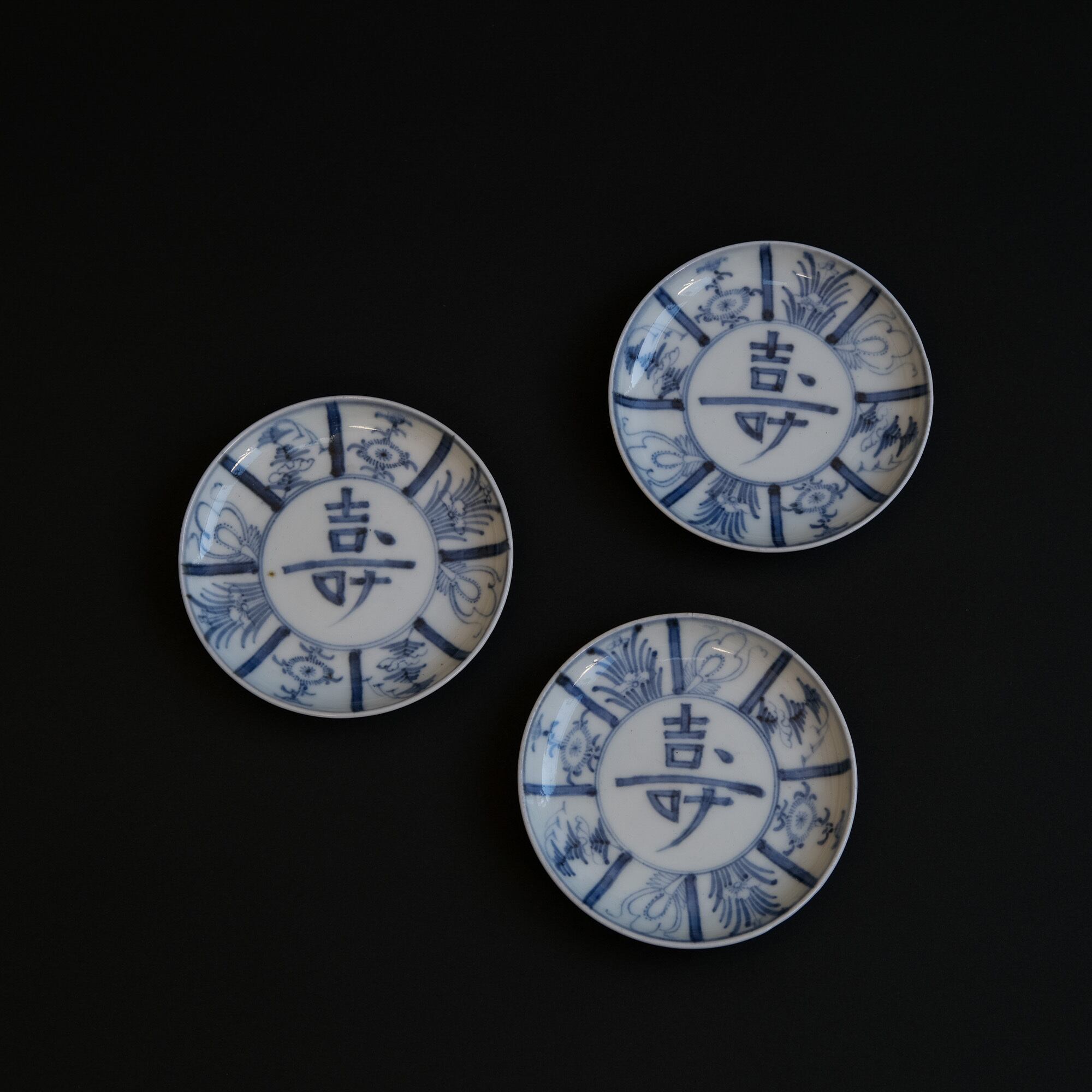 染付で描かれた壽の文字と縁取りの植物の絵がとても素敵です。