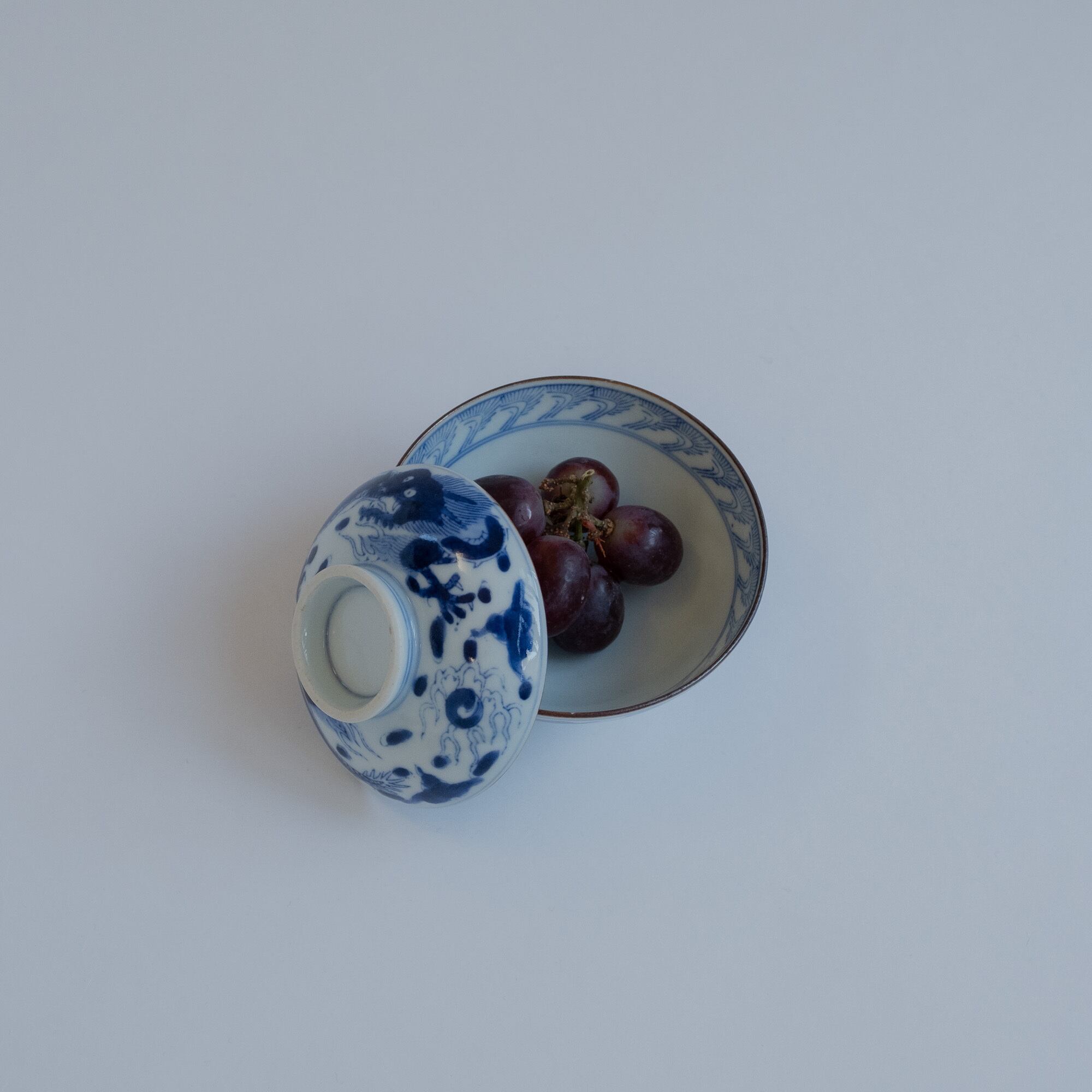 日本の古い染付の蓋付き茶碗です。