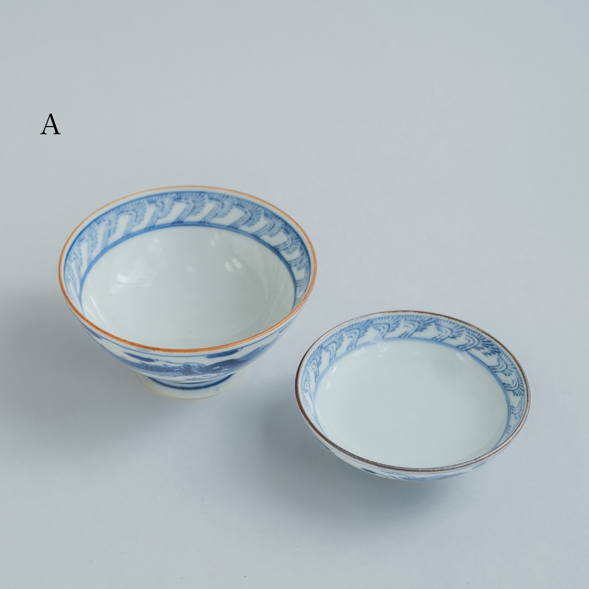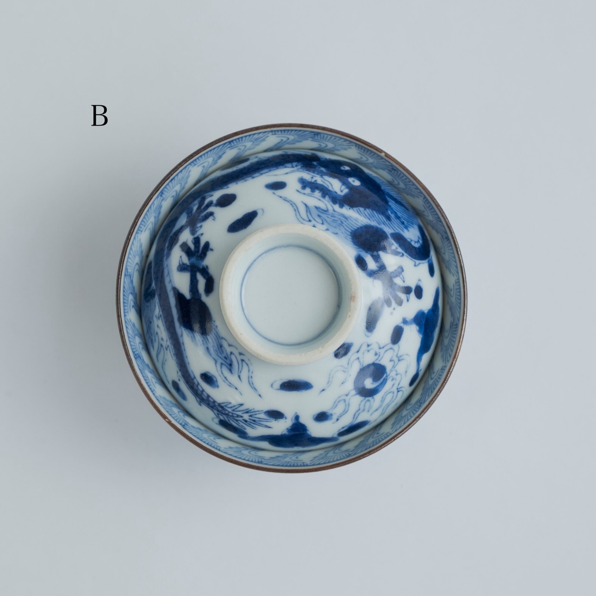 磁器に染付でのんびりしたタッチの龍が描かれています。