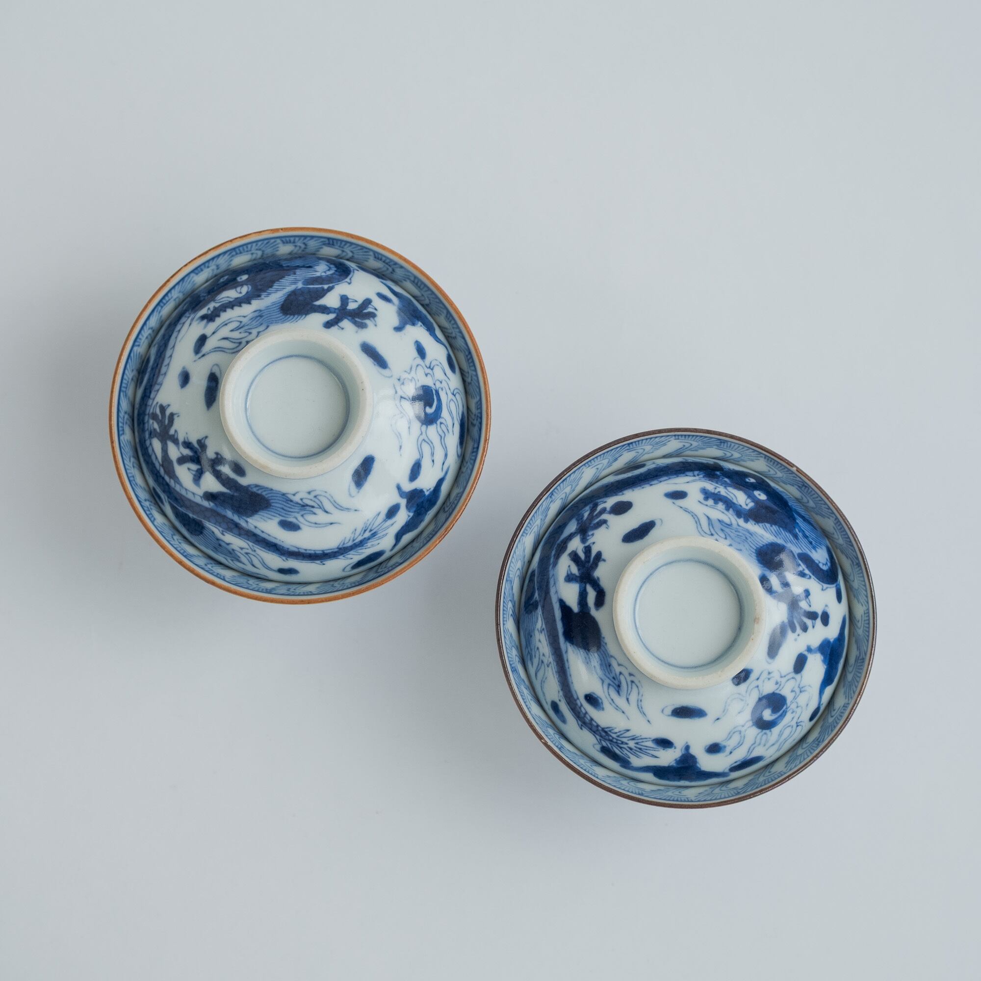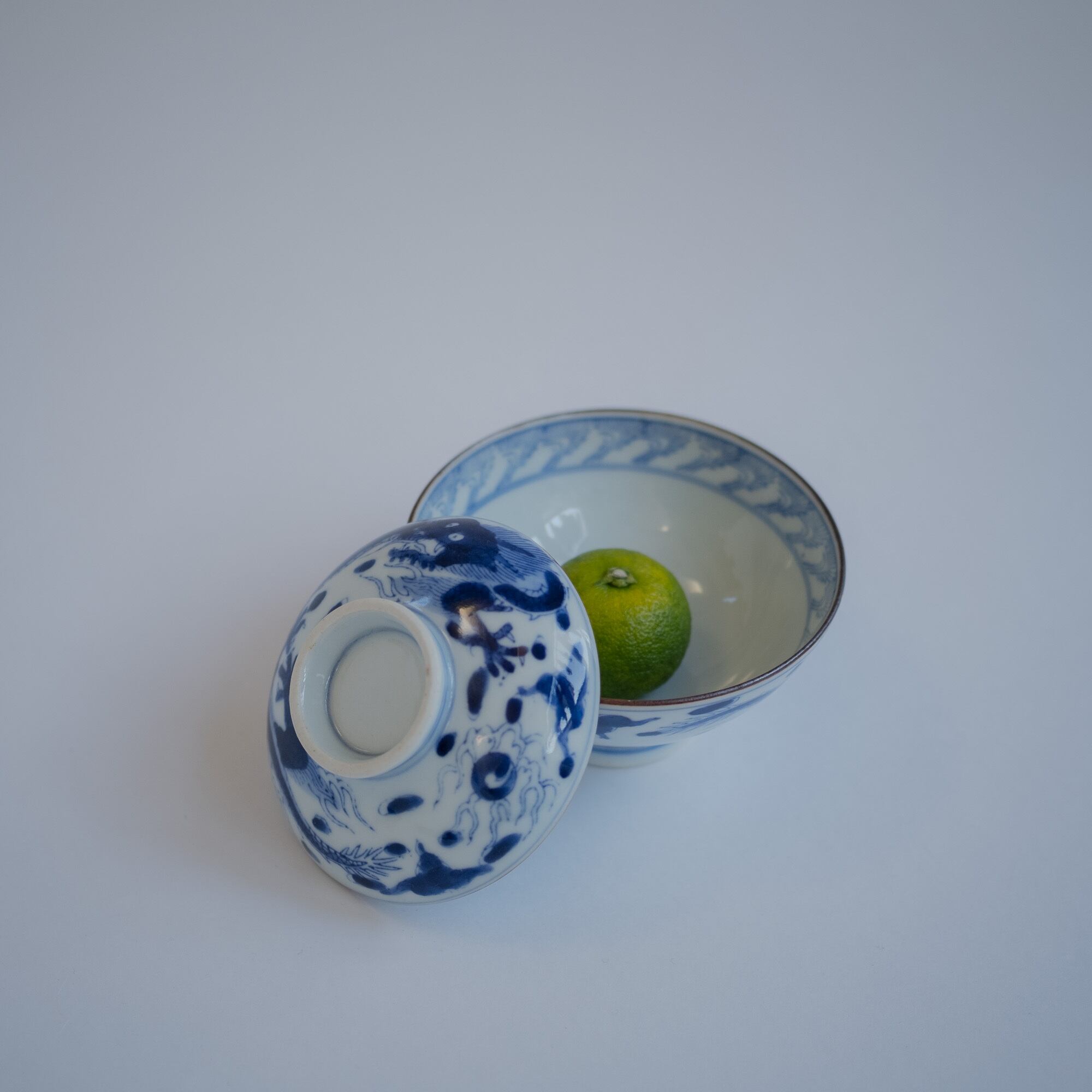 古いふた付き茶碗 ドラゴン 小丼ぶり