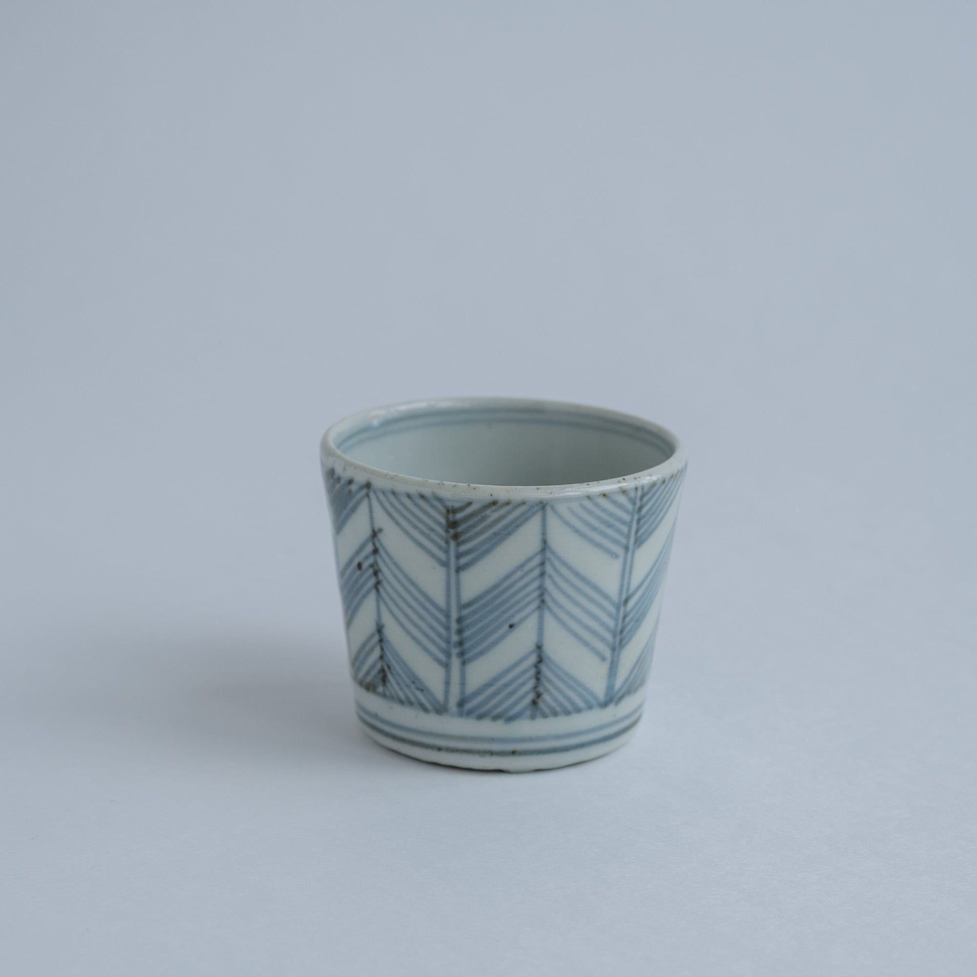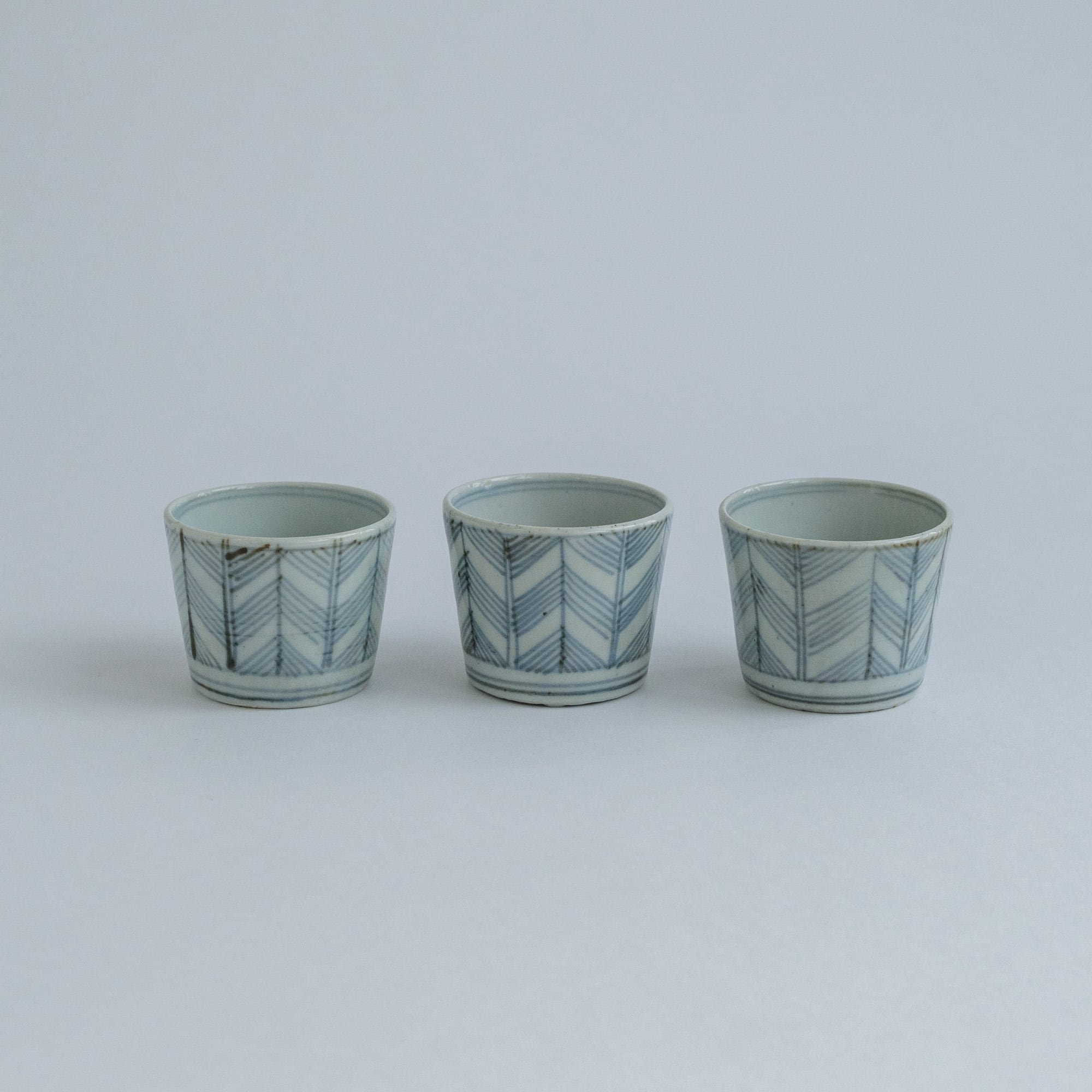矢羽文様の古伊万里か砥部焼の蕎麦猪口です。