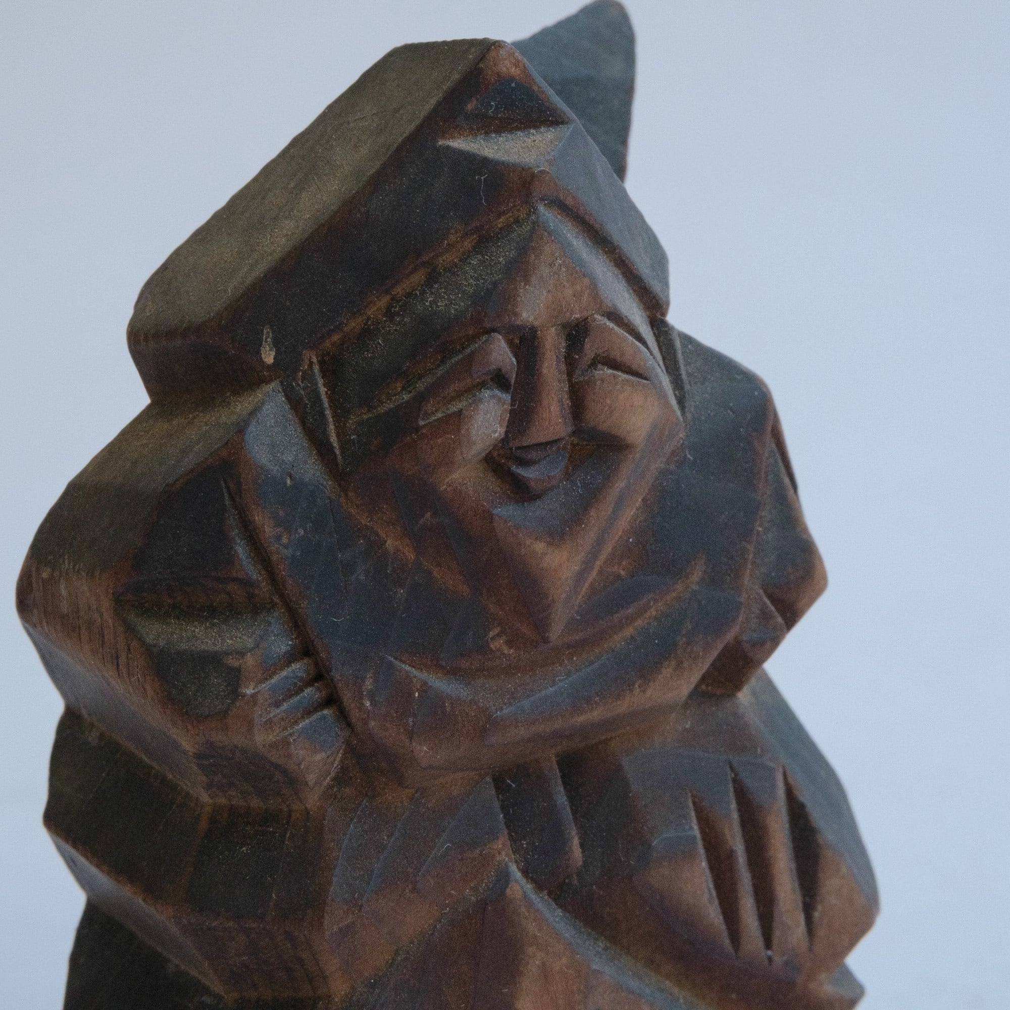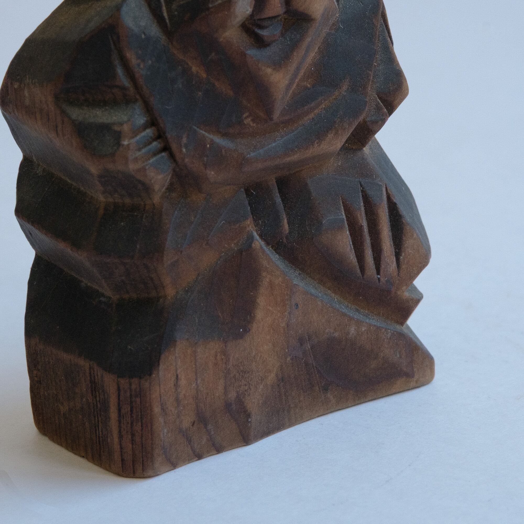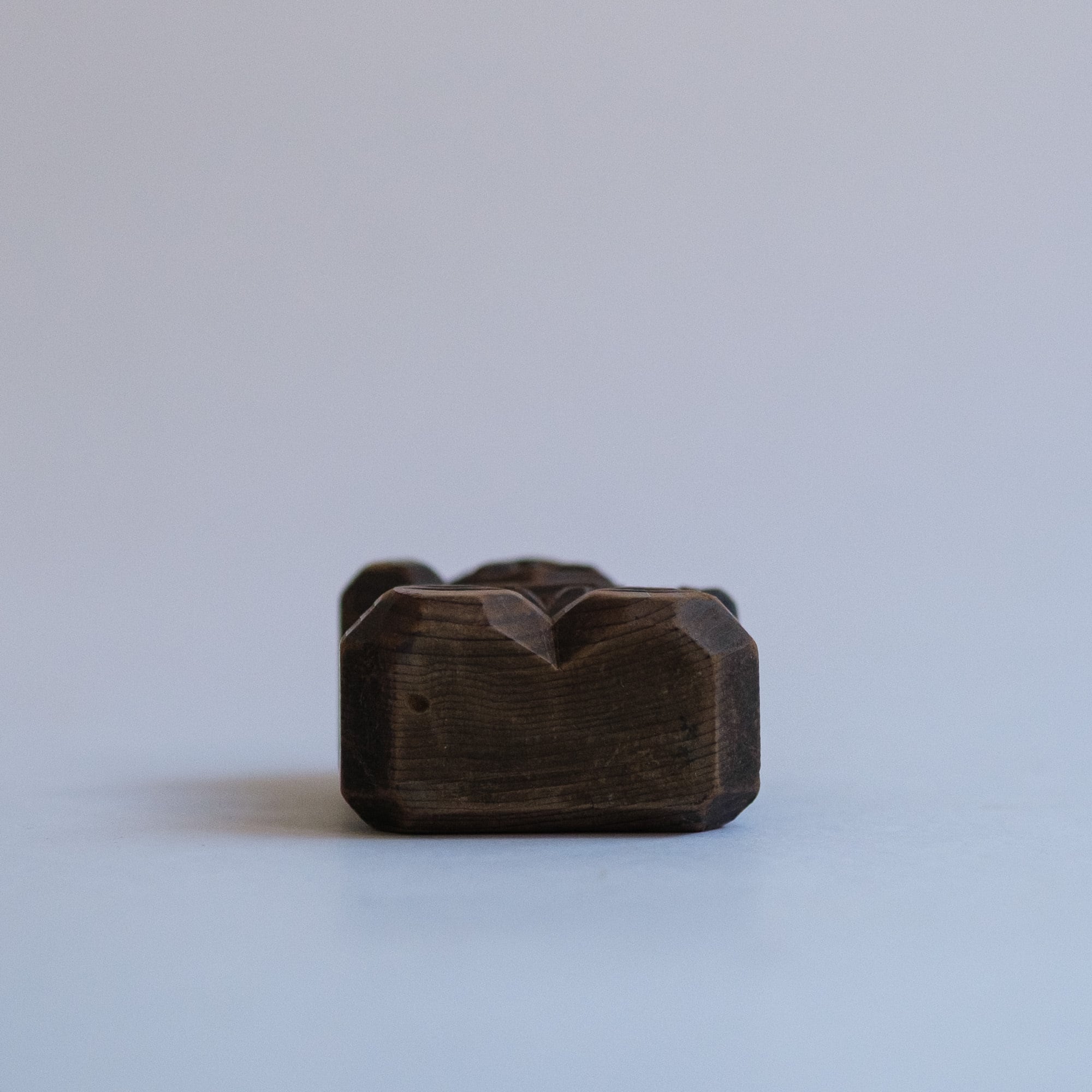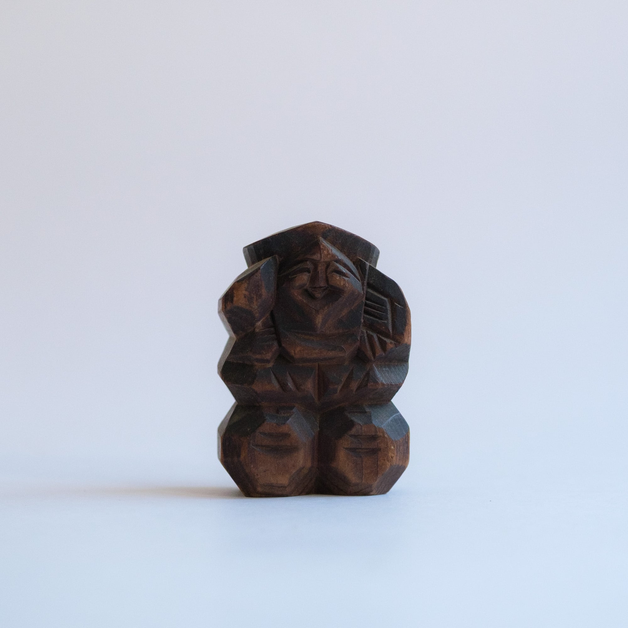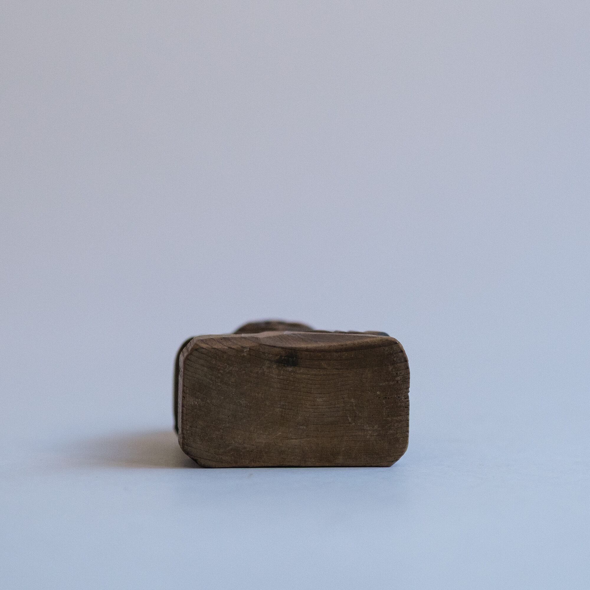 A small carved wooden set of Ebisu and Daikoku with warm, grandfatherly smiles. Likely once a shrine souvenir or devotional keepsake.